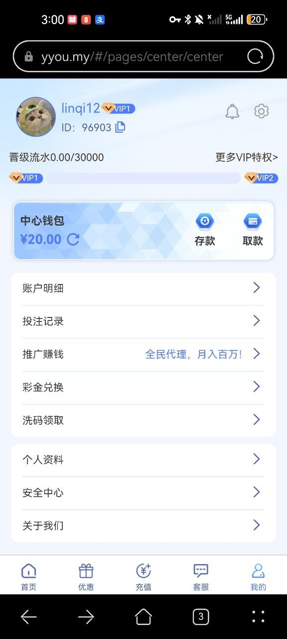 新用户注册绑卡送 20,只能玩PG,最高提款108元