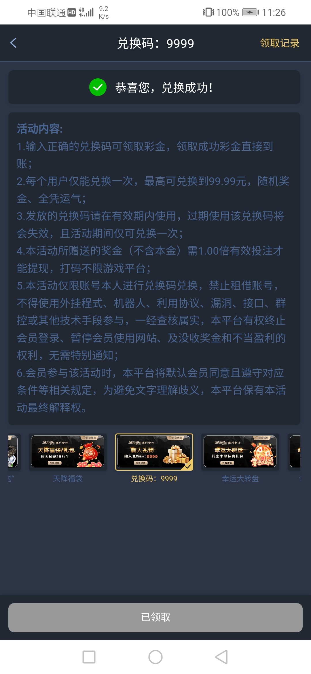 能充值10块 等于以小博大10+10