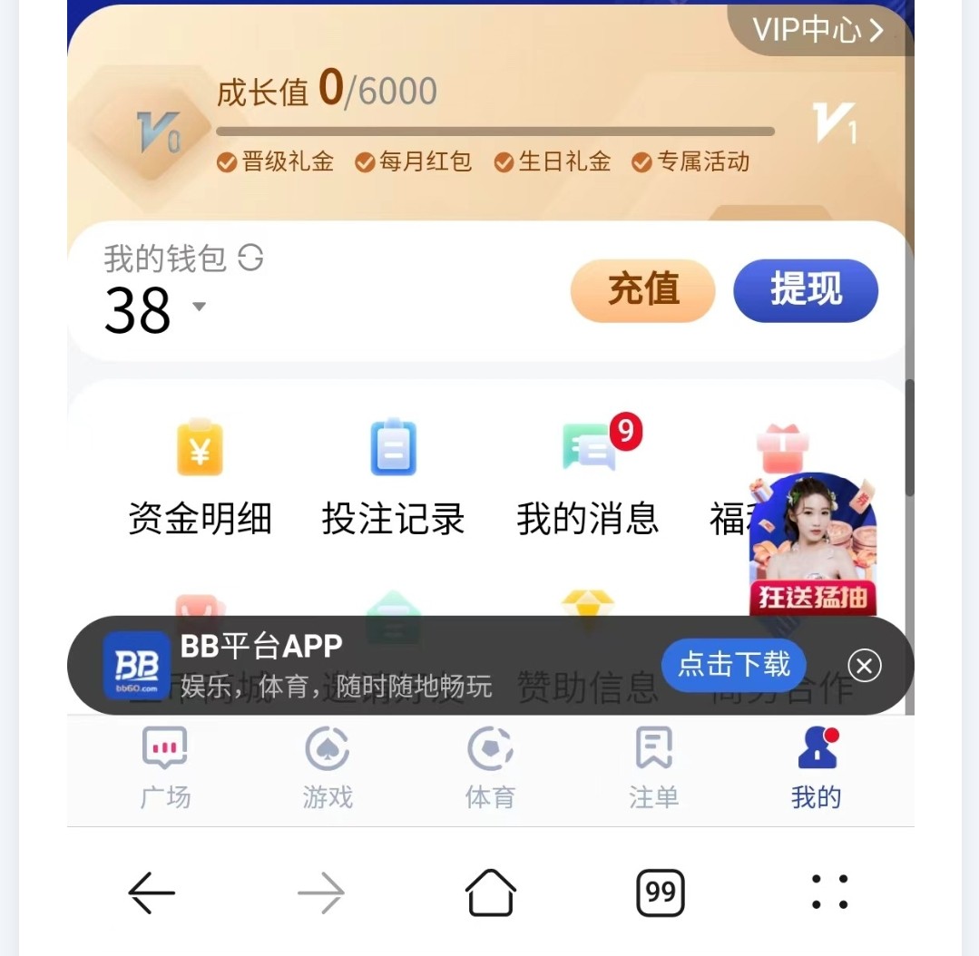 新用户注册自动弹出新人送彩金活动根据提示绑定手机号/银行卡,送38/100提。