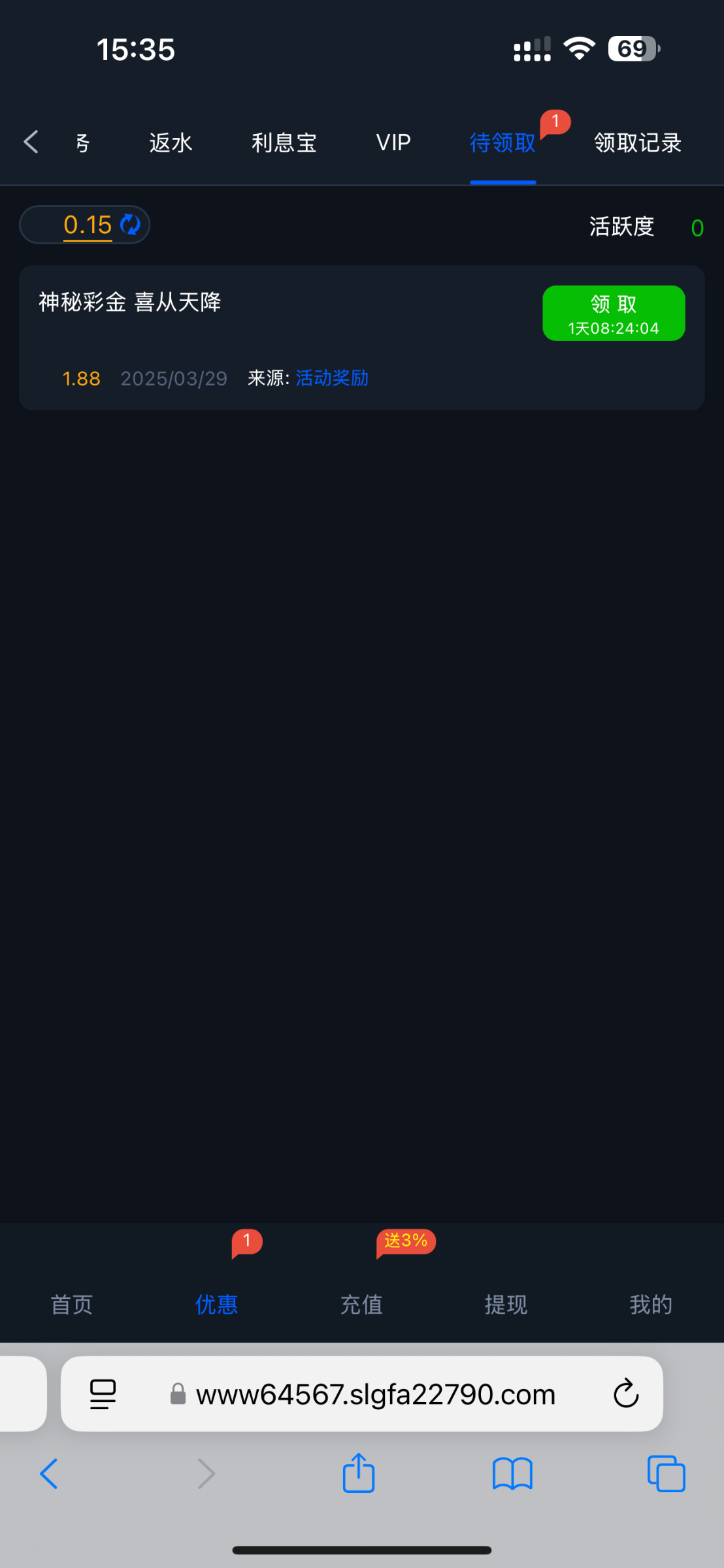 神秘彩金。很久之前充值过 不知道是不是都很低 我才1.8地址