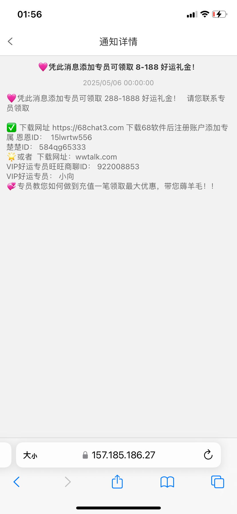 收到站内信去加旺旺或者68,图片有旺旺和他们68的联系账号。我给了我18,提140 地址 378.com