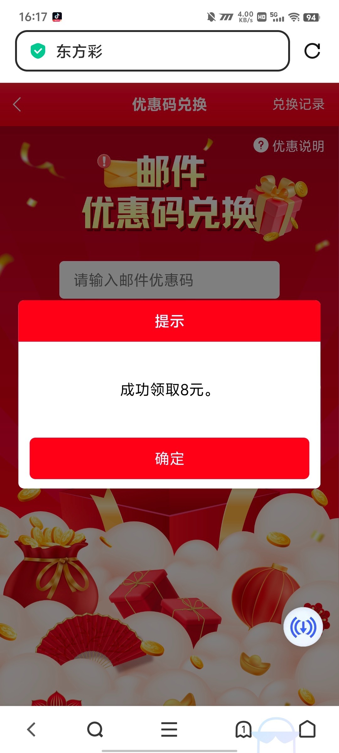 老哥们去邮箱看看有没有我刚领到就发出来了 567998.com