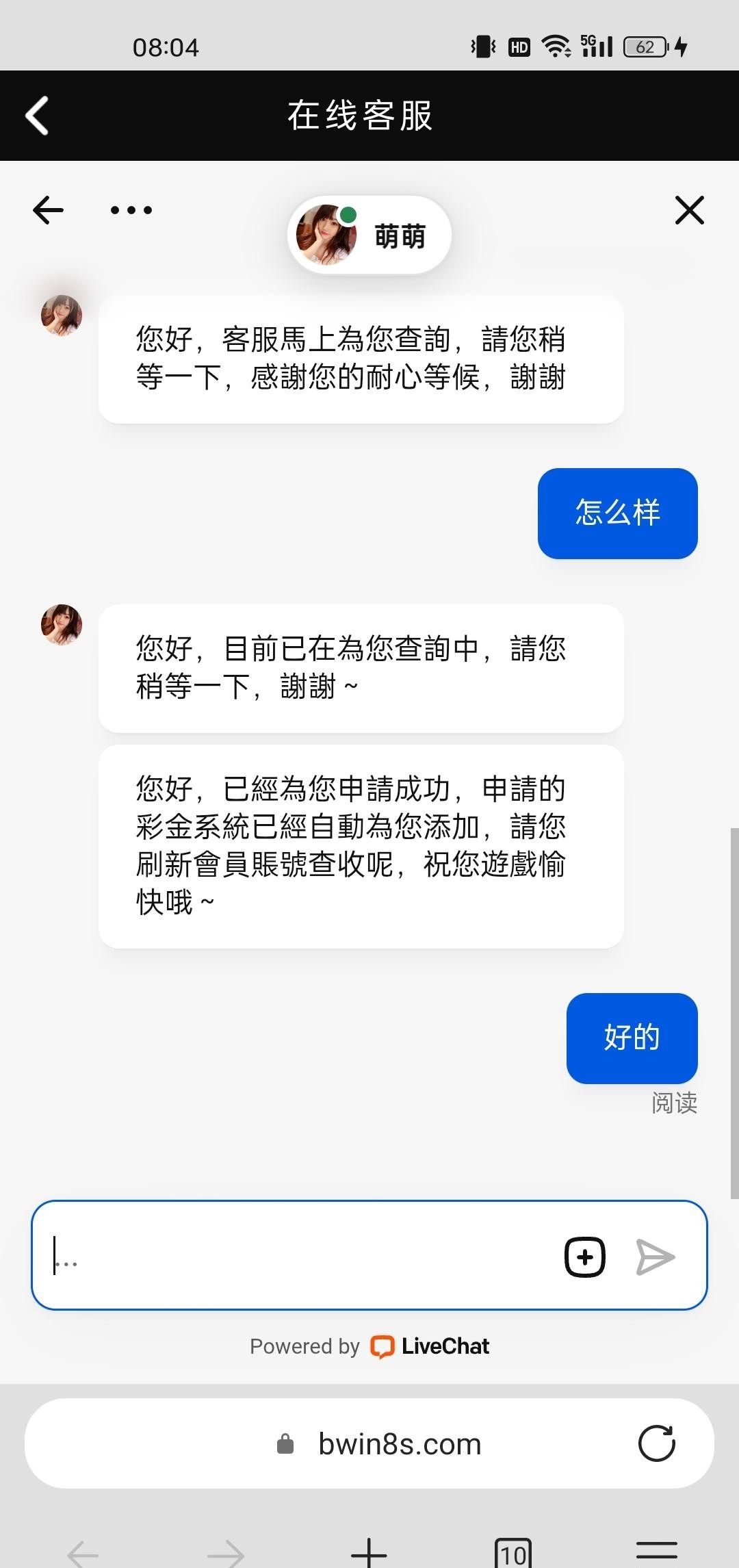 注册绑卡找客服领取,我领到了5块 网址bwin8.com