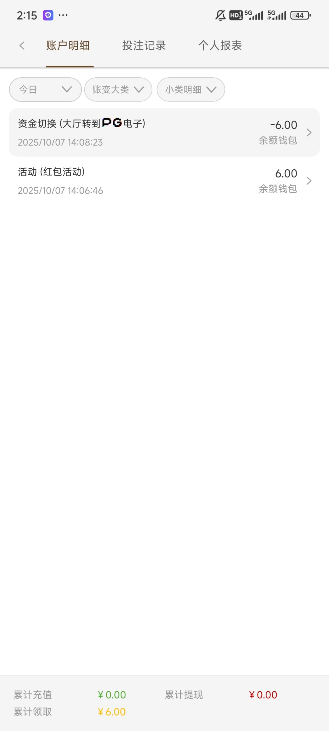 出款情况:自测(